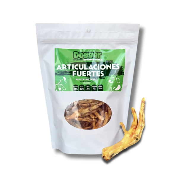 Nuestras patitas de pollo deshidratadas son una fuente natural de glucosamina, condroitina, colágeno y calcio, nutrientes clave para el cuidado de articulaciones, cartílagos y huesos. Son ideales tanto para perros con desgaste articular como para perros activos que necesitan proteger su cuerpo día a día.